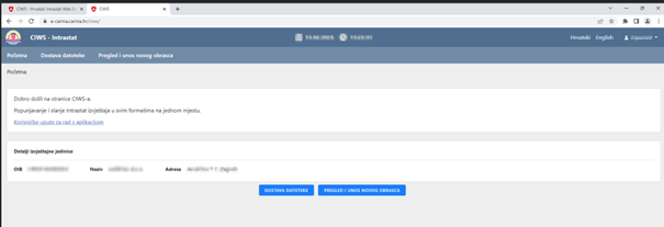 - CIWS online Intrastat obrasca,