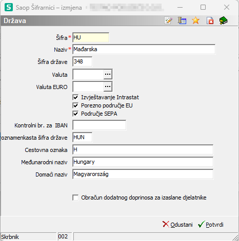 - Postavke države stranke dobavljača